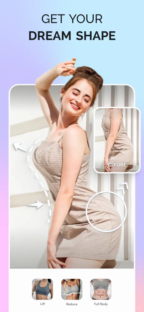 Achieve your ideal figure with our Body Contour feature. Effortlessly refine your shape by enhancing curves, adding volume where needed, and creating a fuller, more balanced silhouette. Perfect your body with just a few taps for a look that is both natural and flawless.