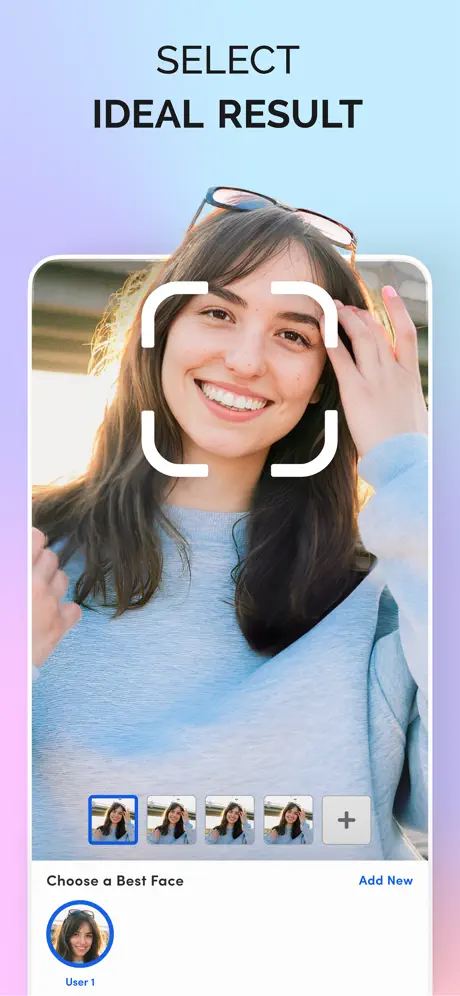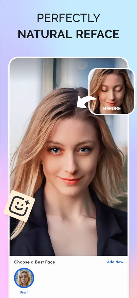 Just simply upload one perfect photo, and our advanced AI algorithms will precisely analyze your face. Even if you capture a moment with an awkward expression, our AI can retouch it with just one tap. Transform any photo effortlessly, making sure every shot is a keeper.