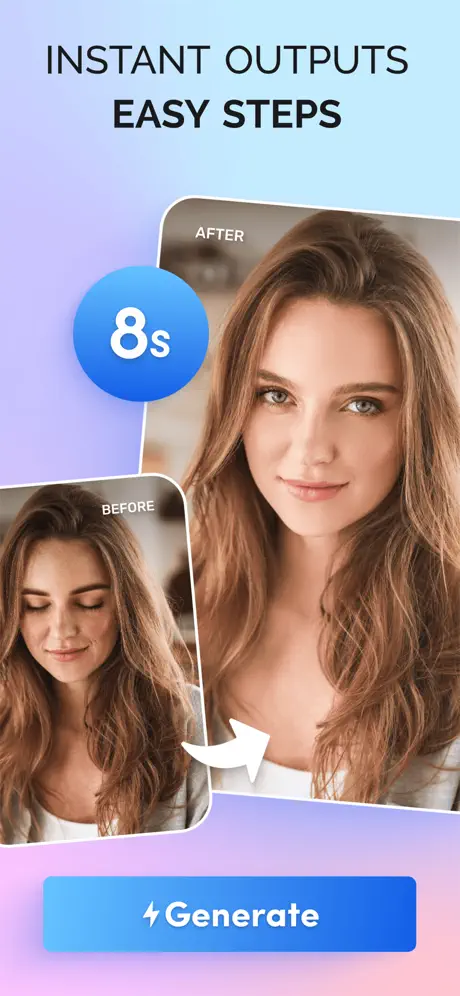 Our app is optimized for speed, delivering fast rendering times so you can see your edits in real-time. No more waiting around for your photos to process – with our app, you get four immediate results at once. The AI photo retouch capabilities ensure your images are ready to share in seconds.